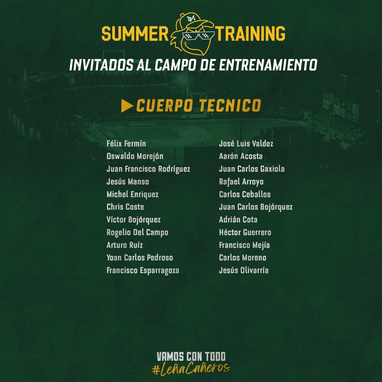 El cuerpo técnico de los verdes está conformado por personas de gran trayectoria y experiencia en el beisbol, empezando por el mánager dominicano Félix Fermín, quién contará con el apoyo de Chris Coste, Oswaldo Morejón, Juan Francisco “Chico” Rodríguez, Michel Enríquez, Jesús Manso, Víctor Bojórquez, entre otros.