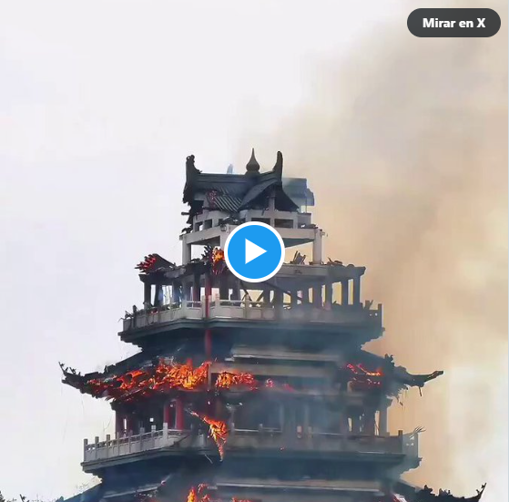 Se trata de un agresivo incendio que dejó graves daños a a pabellón Wenchang del Templo Yongqing uno de los sitos religiosos más importantes y antiguos de China.