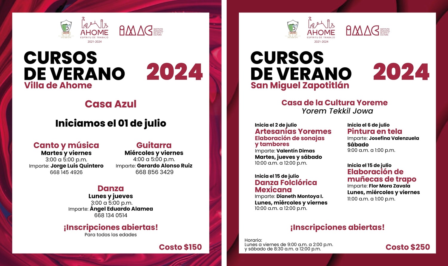 Los talleres y cursos de verano del Instituto Municipal de Arte y Cultura (IMAC) en las bibliotecas públicas y museos comunitarios en la ciudad de Los Mochis, sindicaturas y comunidades rurales ahomenses, están listos para que las familias aprovechen este periodo de asueto, aprendan y se capaciten en diversas artes y oficios.